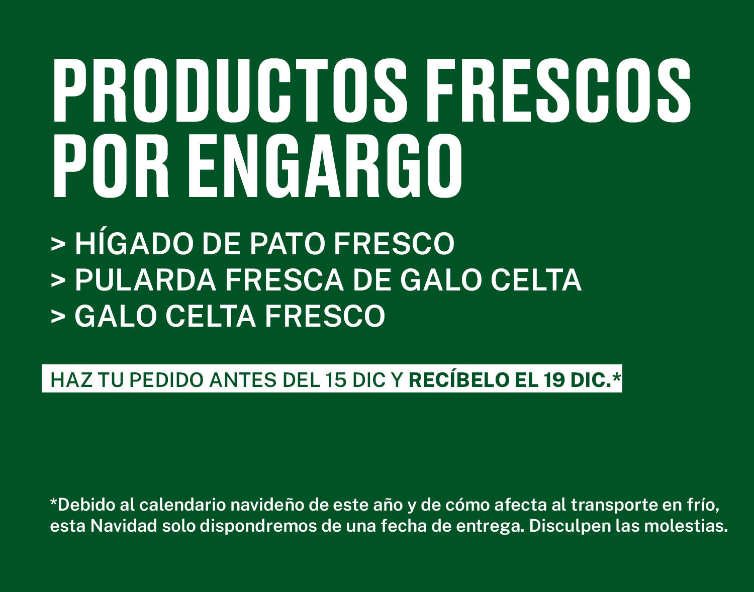 Galo Celta27.500 €/kiloPrecio habitual 110,00 €Precio habitualPrecio unitario por110,00 €Precio de oferta 110,00 €8/10 RACIONESEntrega: 19 diciembre