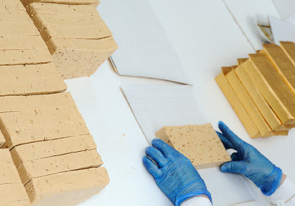 La almendra repelada y tostada se añade cuando el maestro turronero detecta el “punto de quebrar mieles”, dando lugar a la masa principal, la masa “madre” de sus turrones. A partir de este momento, cada producto sigue su receta tradicional y familiar.