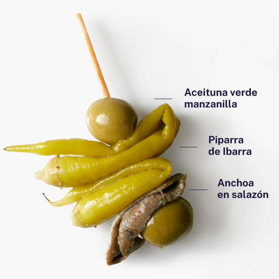 La gilda es el pintxo icónico por excelencia, presente en las mejores barras de bar e inmejorable cuando se acompaña de una bebida fresquita y buena compañía.