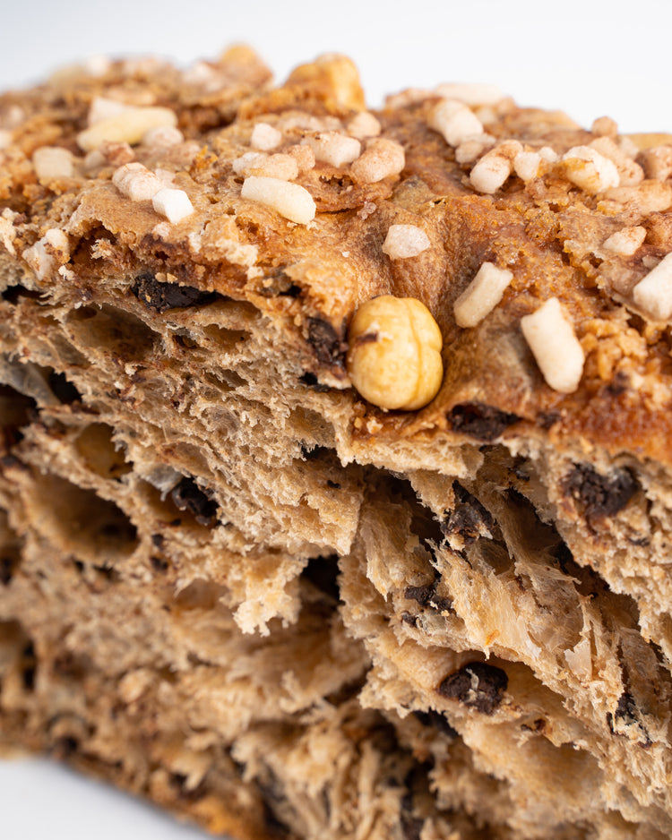 Una vez hecho esto, es hora de amasar el primer empaste, compuesto de mantequilla, harina, yema de huevo, agua y la masa madre, y se deja fermentar toda la noche. Al día siguiente, la masa vuelve a amasarse con el azúcar, la miel, más yemas, más mantequilla y los ingredientes propios de cada tipo: chocolate, turrón, naranja confitada, cidra, toffee, etc.
