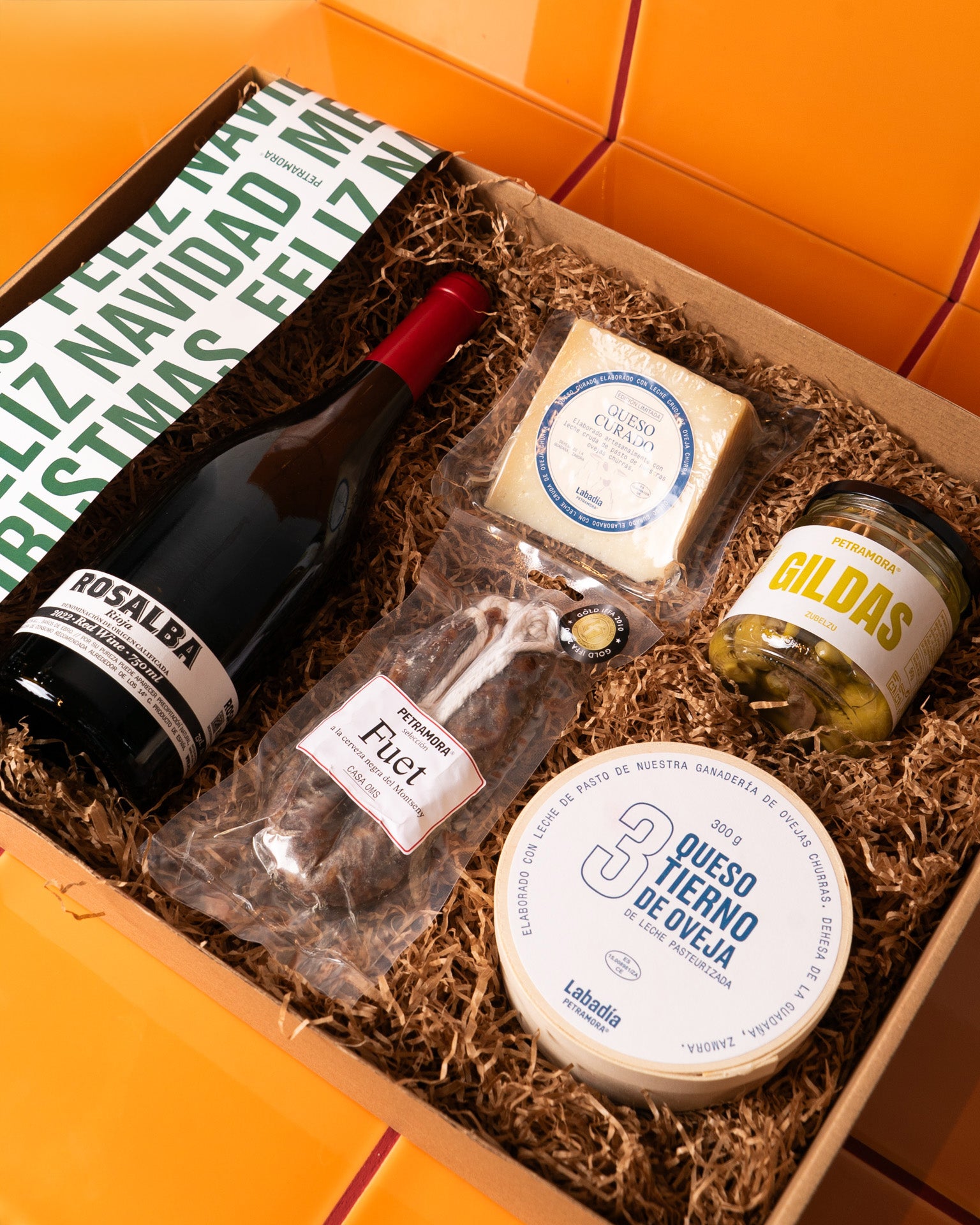 - 1 ud. de Labadía curado cuña: Queso zamorano elaborado con leche cruda de nuestras ovejas churras, que pastorean en libertad en Dehesa de la Guadaña, y madurado durante más de 5 meses.