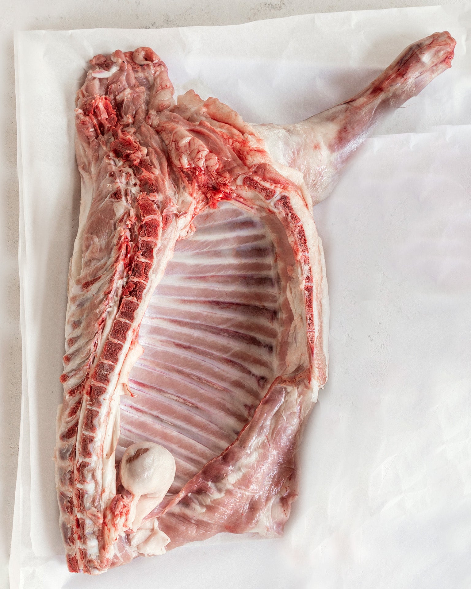 Cuarto delantero de cordero lechal/lechazo de nuestra propia ganadería en Dehesa La Guadaña (Zamora) alimentado exclusivamente con leche materna. Sin duda el corte mas exclusivo de nuestro lechazo.
