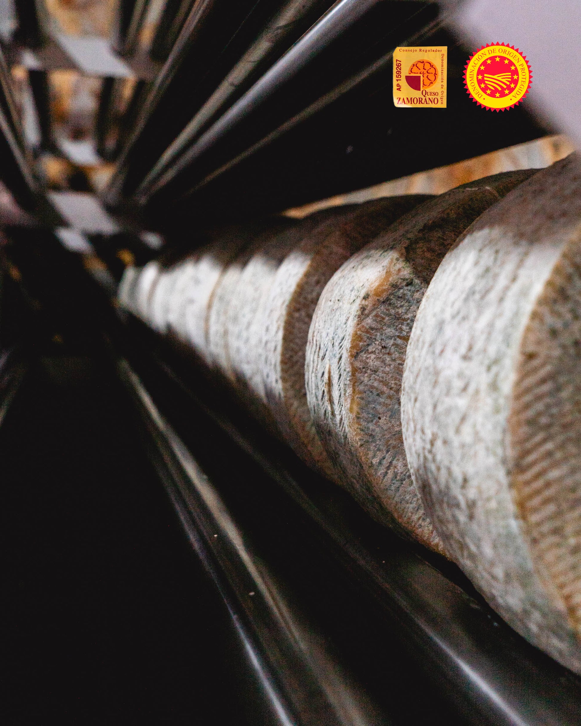 Queso Zamorano DOP elaborado con leche cruda de nuestras ovejas churras , que pastorean en libertad en Dehesa de la Guadaña, y madurado durante más de 6 meses.