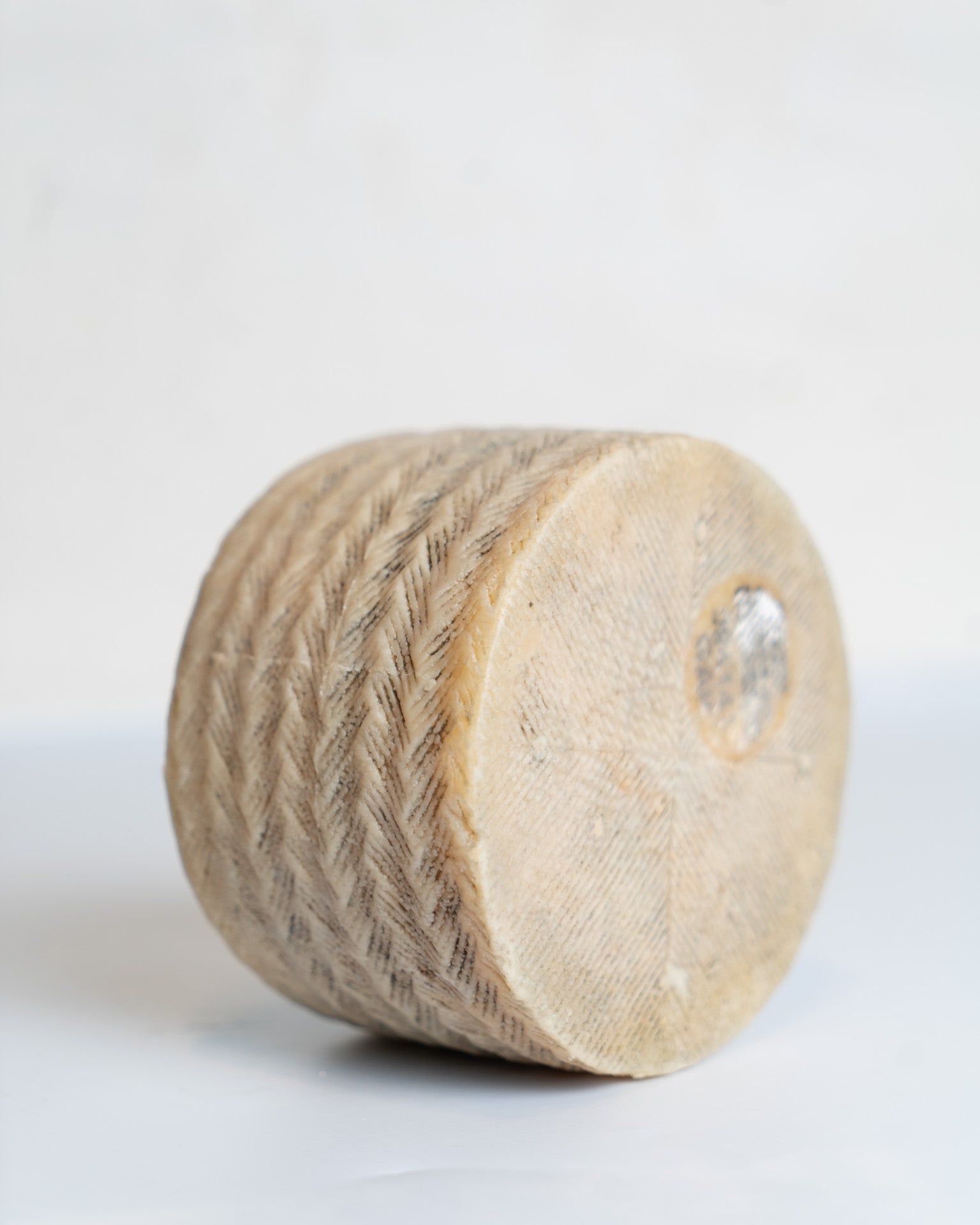 Queso Curado elaborado con leche cruda de nuestras ovejas churras, que pastorean en libertad en Dehesa de la Guadaña, y madurado durante más de 5 meses.