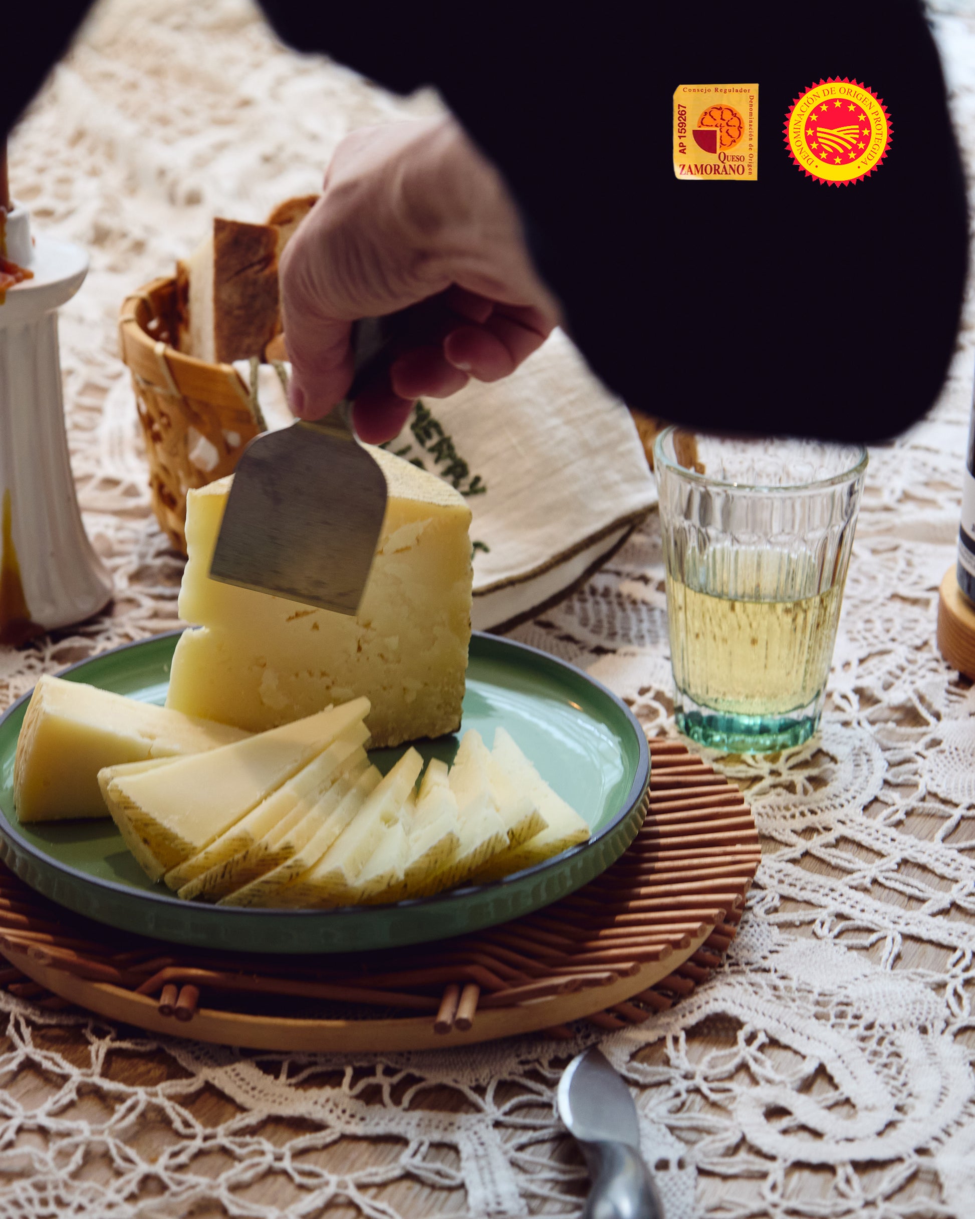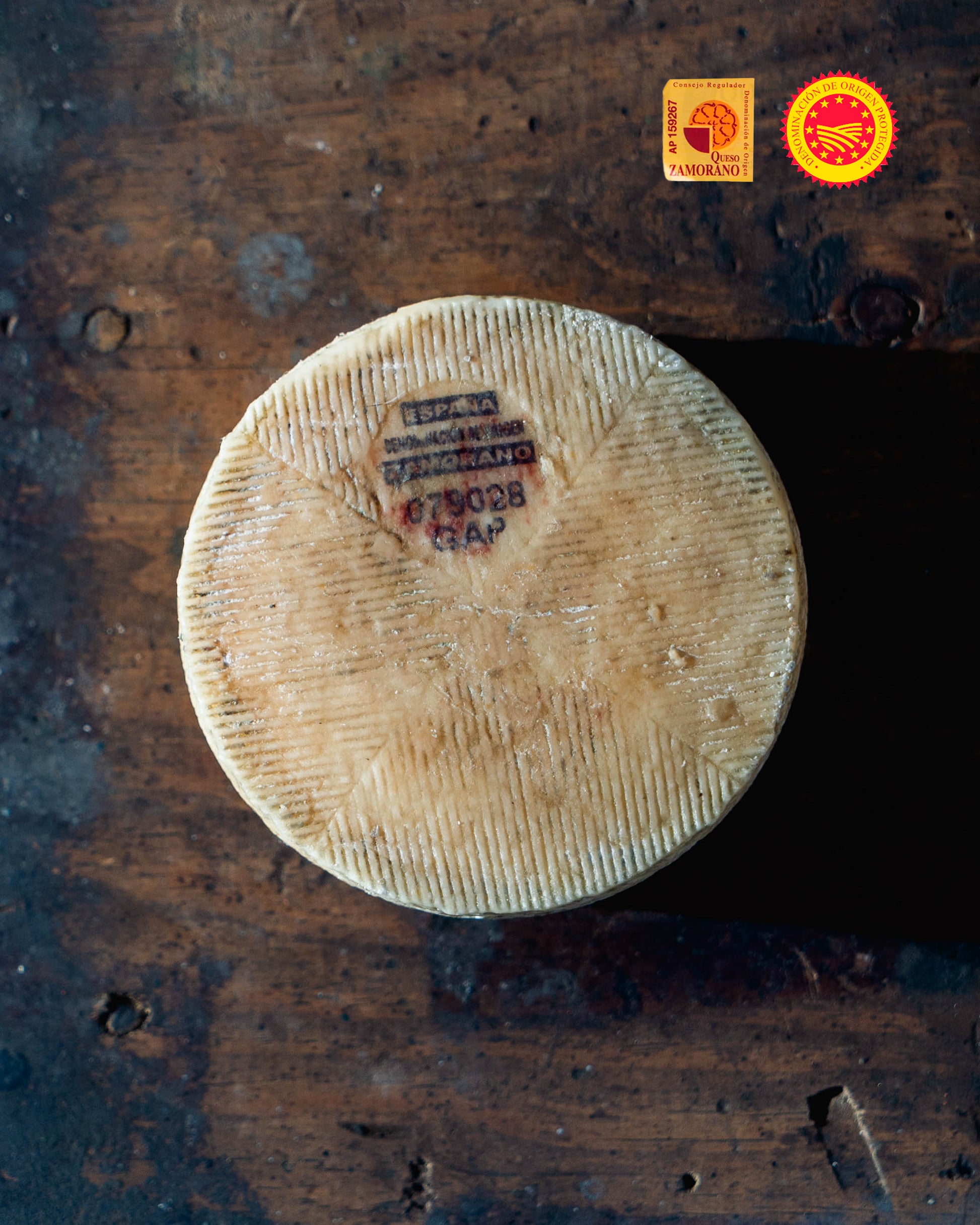 Queso Zamorano DOP elaborado con leche cruda de nuestras ovejas churras, que pastorean en libertad en Dehesa de la Guadaña, y madurado durante más de 5 meses.