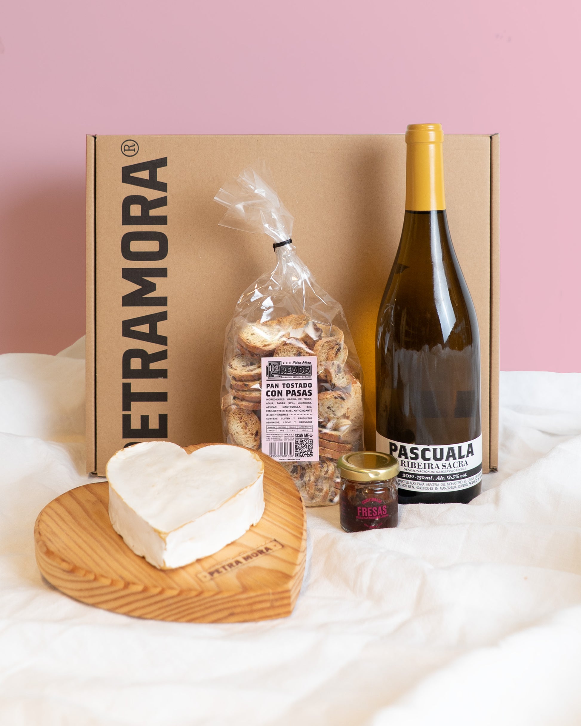 Lo esencial para conquistar. Pack especial San Valentín compuesto por: Queso corazón Le coeur Neufchatel AOP Xavier 200 g, queso de pasta blanda y corteza natural enmohecida con forma de...
